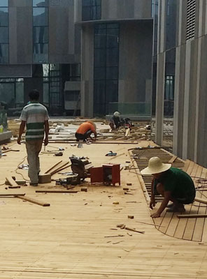 木質(zhì)座椅打造一片休憩的空間,布藝的抱枕,溫馨的燈光,給人內(nèi)心充盈的舒適和溫暖感覺(jué)!置身其中,放松心情,整個(gè)人都沉靜下來(lái)!自家若有個(gè)大庭院,木平臺(tái)的規(guī)劃讓花園更具人文氣息,木地板、木柵欄、木樓梯、木亭廊……起到藝術(shù)的裝飾作用,同時(shí)布置一些照明燈具,夜晚的庭院更顯沉穩(wěn)和品味。 防腐木產(chǎn)品誰(shuí)來(lái)施工? 庭院剛施工完成,柳岸木的葡萄架開(kāi)裂了?  開(kāi)車(chē)去現(xiàn)場(chǎng)看了一下,做好的葡萄架木質(zhì)很松、裂口很大,可以確定開(kāi)裂的原因:用的不是柳桉而是松木的一種,但是具體是哪一類(lèi)松木也分辨不出來(lái),裂縫產(chǎn)生主要原因是木頭沒(méi)有烘干,含的水分很多,經(jīng)過(guò)風(fēng)吹日曬,木頭中的水分蒸發(fā)發(fā)生收縮變形而產(chǎn)生裂縫,把木頭換掉基本是不可能了,唯一的解決辦法就是等裂縫穩(wěn)定以后用膩?zhàn)犹顫M(mǎn)重新做油漆?! ∈虑榻鉀Q了,正好業(yè)主也在,就問(wèn)他簡(jiǎn)單溝通了下,了解了一下情況,幫他做花園的是找上門(mén)來(lái)的一個(gè)施工隊(duì),柳桉防腐木地板3公分厚280元/平方,葡萄架報(bào)價(jià)500元/平方,就業(yè)主算了一筆賬,正宗柳桉木現(xiàn)在市場(chǎng)價(jià)按5000元一立方計(jì)算,不算損耗,一立方可以做33個(gè)平方地板,每平方是150元,木工安裝費(fèi)市場(chǎng)行情是60元/平方,油漆30元/平方,加上地板下的木楞50元/平方加起來(lái)就是290元/平方,再加上損耗和正常的公司利潤(rùn),280元/平方的柳桉防腐木地板怎么能做的出來(lái)呢